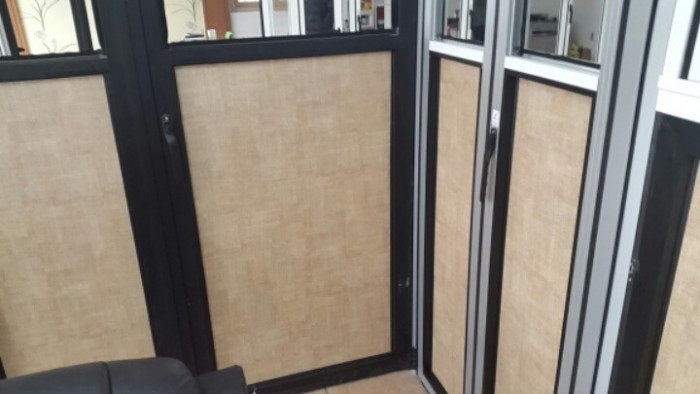 유리대신 엠디 에프 화판과씨트지을 사용한 사례입니다